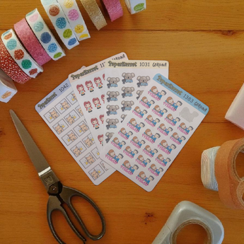 - Pieni erä kuvausrekvisiittana olleita tarra-arkkeja 4kpl